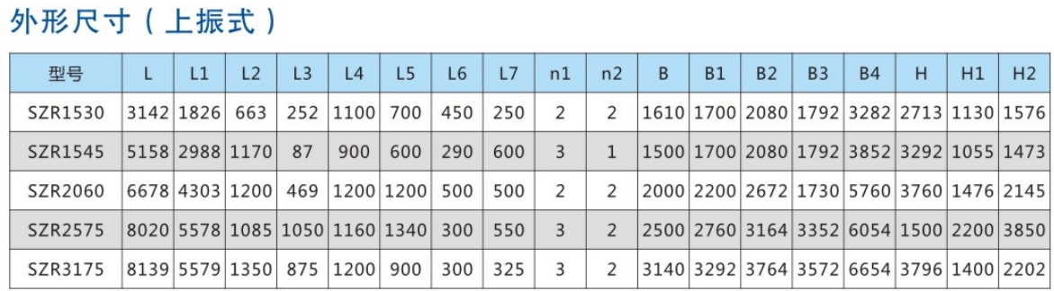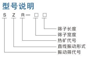 SZR系列热矿振动筛均为座式安装。采用双轴激振器,电机不参振;由两台电机外拖动激振器作反向自同步旋转,使筛体沿直线方向作周期性往复运动,从而达到筛分目的。